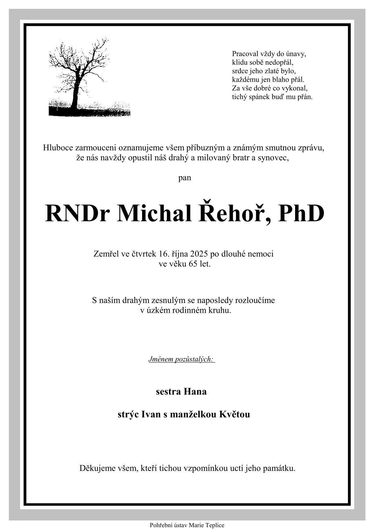 Michal Řehoř *8. 4. 1960 - †16. 10. 2025